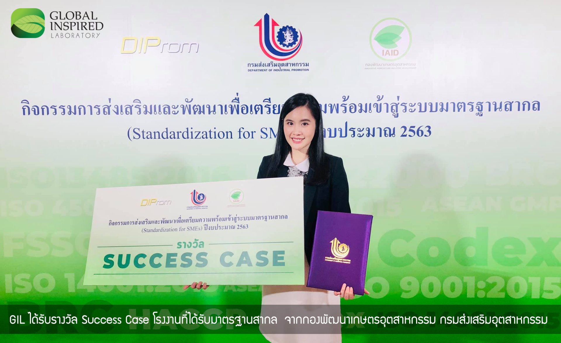 โดย "บริษัท โกลบอล อินสไปร์ แลบบอราทอรีส์ จำกัด" ได้ถูกคัดเลือกเลือกให้เป็น 1 ใน 5 กิจการที่ได้รับรางวัล Success Case โรงงานเป้าหมายที่ได้รับมาตรฐานสากล จากกองพัฒนาเกษตรอุตสาหกรรม กรมส่งเสริมอุตสาหกรรม โดยมีกิจการที่สมัครเข้าร่วมทั้งหมด 50 กิจการ ซึ่งมี "ดร.ลีลาวดี เปาอินทร์" เป็นตัวแทนบริษัทฯในการร่วมงานและรับรางวัลนี้