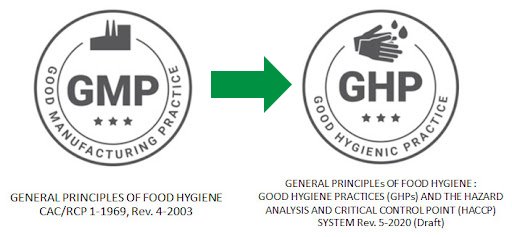 พอเปลี่ยนเป็น GHP ซึ่ง ตัว “H” ย่อมาจากคำว่า “Hygiene” เพื่อให้สามารถครอบคลุมอุตสาหกรรมอื่นๆ ที่เกี่ยวข้องกับ “Food Chain” หรือ “ห่วงโซ่อาหาร” ว่าทุกอุตสาหกรรมที่เกี่ยวข้องกับอาหารตั้งแต่เริ่มต้น